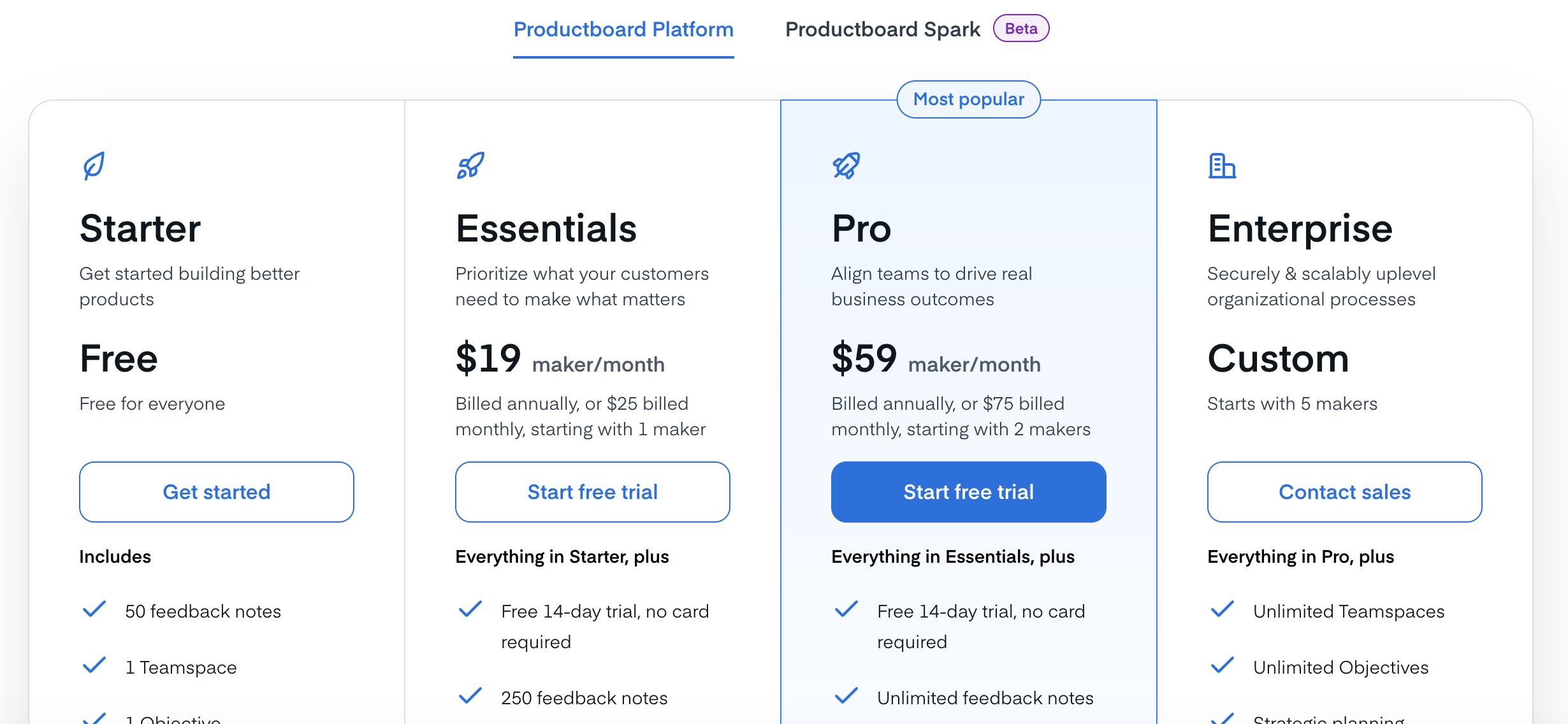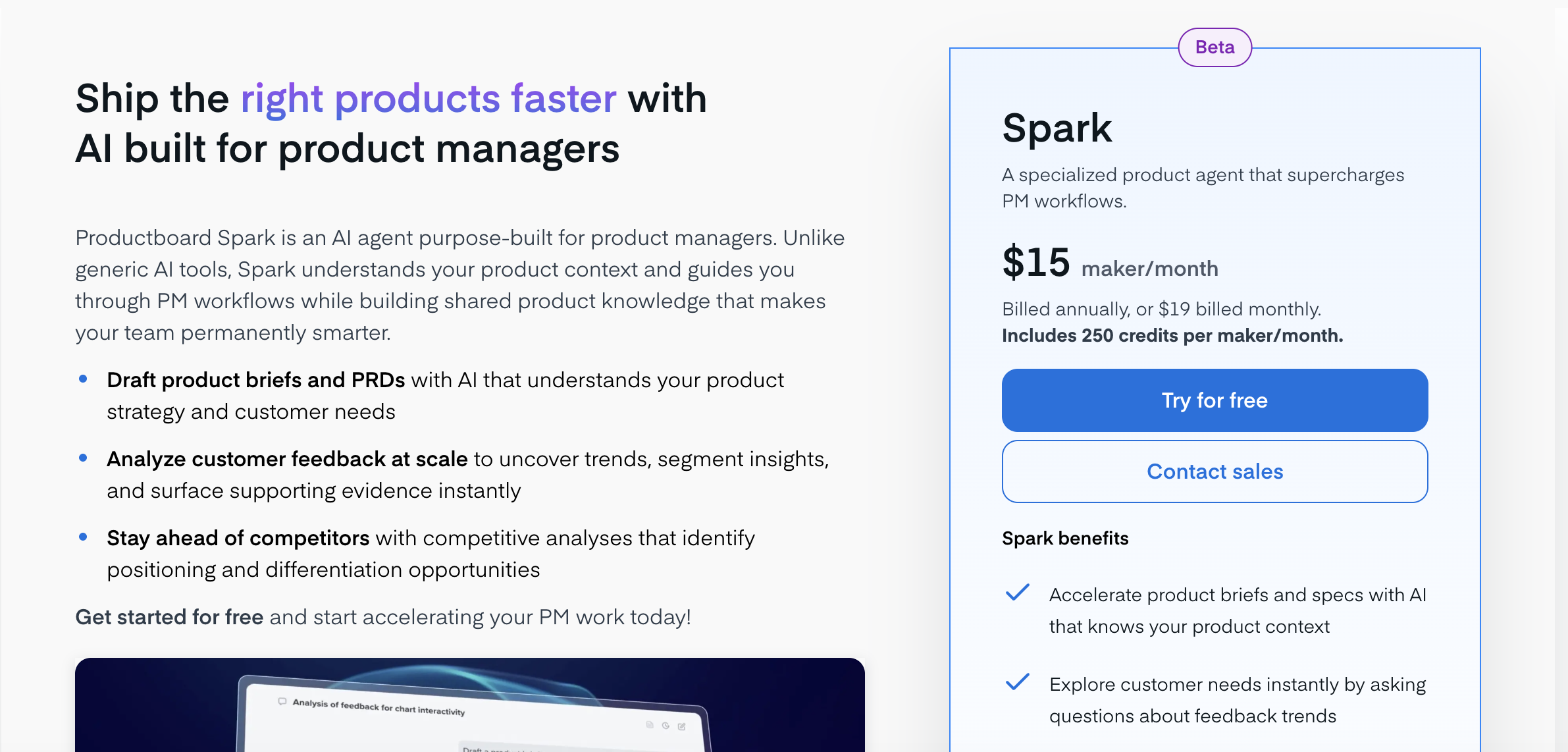 - Productboard Spark: an AI agent can work on your behalf and costs $15 per maker per month