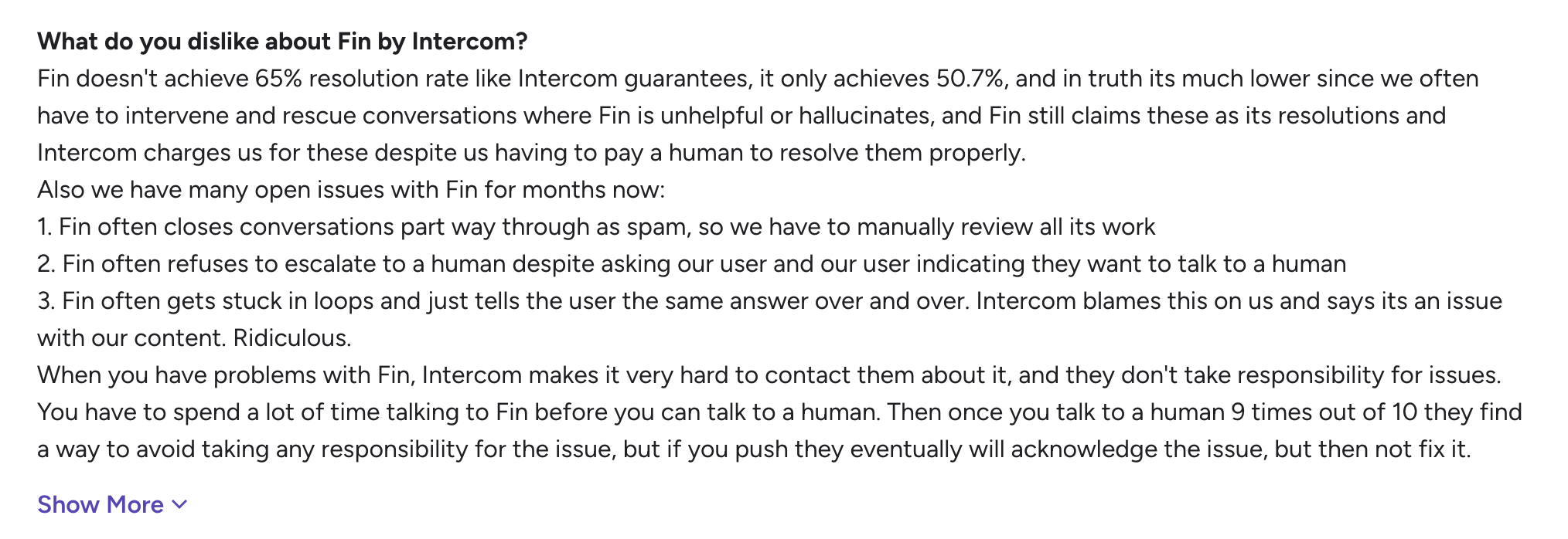 Technically, you could have one Intercom user and countless AI resolutions, and your monthly bill could go through the roof. You can also get Fin separately built into your existing help desk solution.