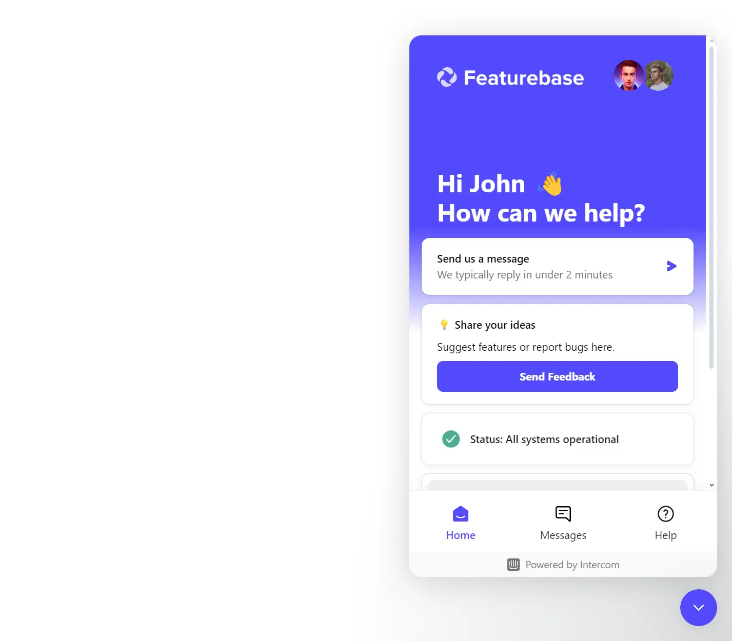 - Live chat: Users love live chat, so this is a great channel for feedback collection. Featurebase integrates with a ton of live chat tools like Intercom and Slack, so you can streamline your feedback process.