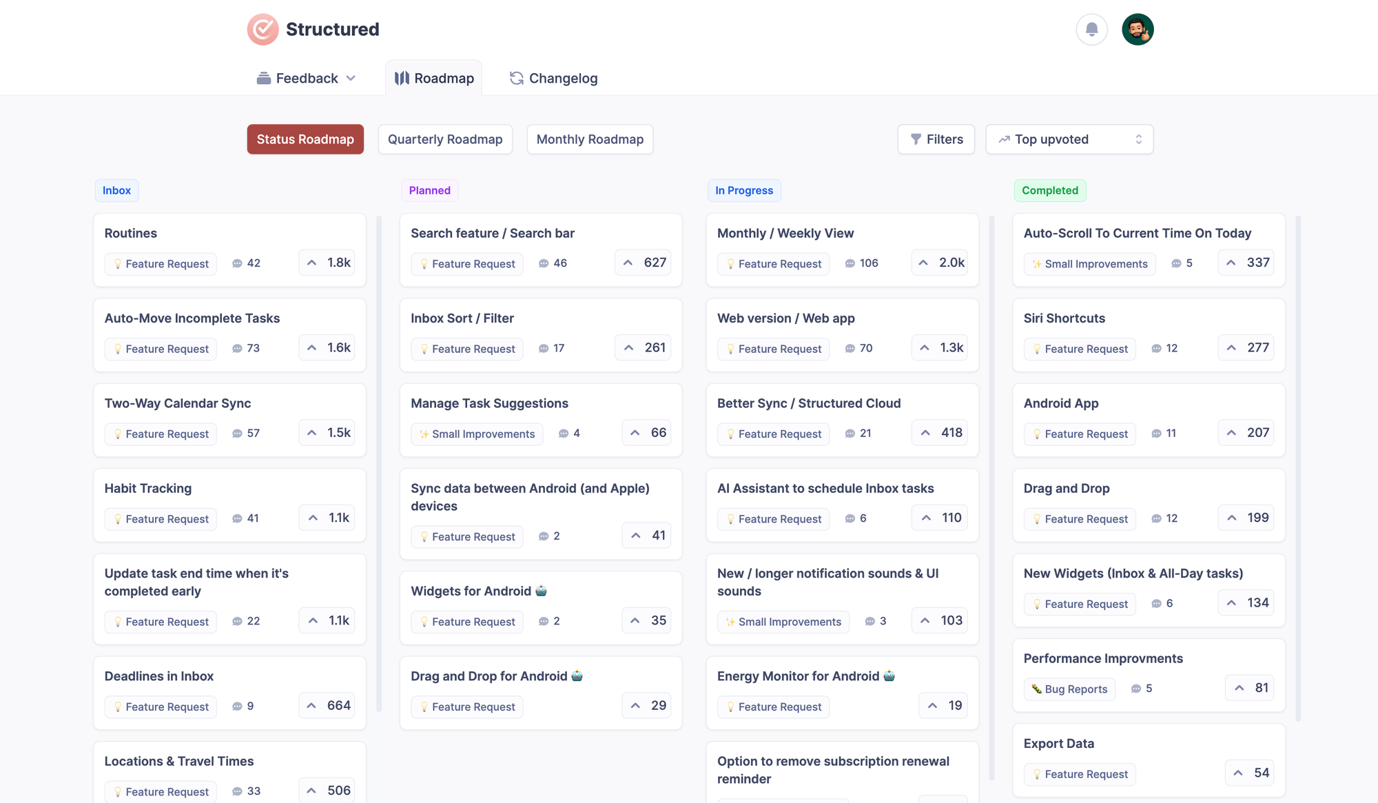 With a tool like Featurebase, you can automatically notify all upvoted users when you've started working on or have completed their feature request.